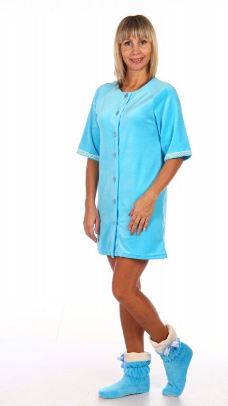 М-3051 Халат СЛАВА голубой (42-52), велюр