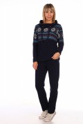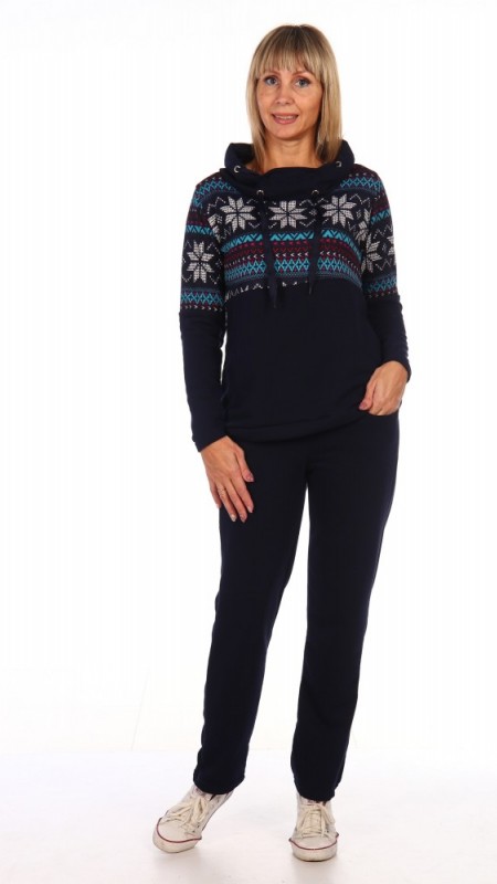 Модный женский костюм,для прохладной погоды,украшеный скандинавским принтом из вязаной ангоры. Воротник ХУДИ .Брюки прямые.