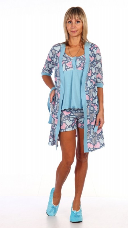 Коплект майка с шортами и пеньюар.Майка свободная на лямках.Пеньюар рукав три четверти ,под пояс.