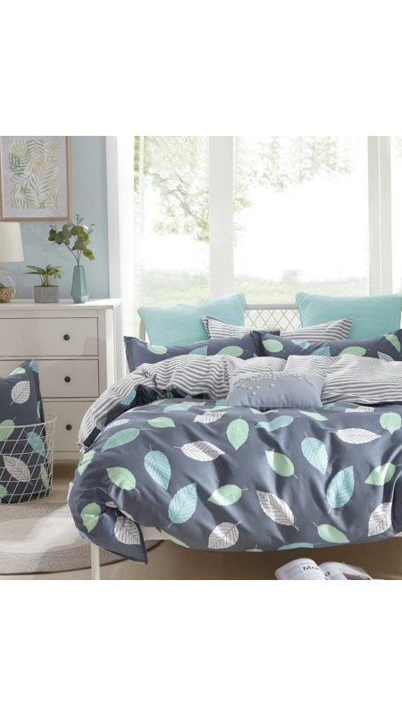 Комплектация: Пододеяльник 2х сторонний, наволочки в тон пододеяльника, простыня из ткани компаньона (серая с мелким рисунком ). Пододеяльник и наволочки на молнии.